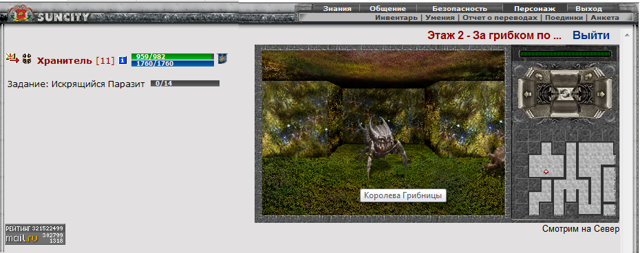 2. Грибница - пещера, в которой воины и маги смогут подобрать себе новые, различные предметы обменивая их у старого "Мудрого Гусеница" на грибочки. Вам предстоит встретиться с такими монстрами как: "Грибковая моль", "Осторожный Щуп", "Сторожевая Грибоножка"... и напоследок вас будет поджидать сама "Королева Грибницы".